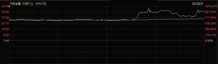 公开资料显示,中金辐照上市的发行价格是每股3.40元。而上市当天盘中在下午1:51分,其价格冲破了34元,一度去到了40元,股价涨幅超过了10倍。最终收盘收在34.70元,涨幅920.59%。