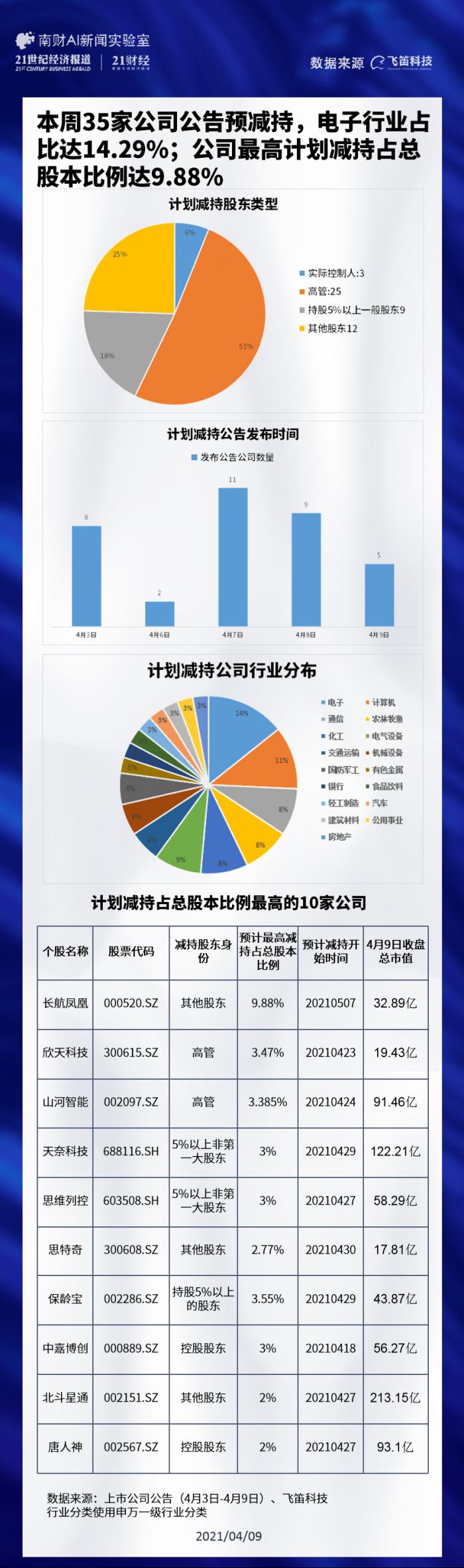 大股东动向|这三家公司再遭实控人减持!一周减持榜:35家公司公告预减持,电子行业占比达14.29%