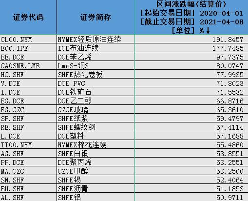 进一步细分,涨幅排名靠前的品种又多以能源、工业金属、石化产品为主,同期出现下跌的品种则主要集中在畜牧、农产品领域。