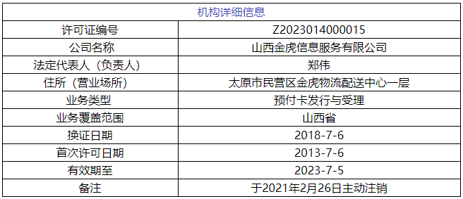 在央行官网公布了最新的支付机构的牌照注销信息中,山西金虎信息服务有限公司的支付牌照被央行正式注销。据公开信息显示,山西金虎信息服务有限公司为主动注销牌照。在本次正式公布注销前,其实已经有迹可循。3月25日,中国支付清算协会发布《关于注销会员资格的公告》,决定注销山西金虎信息服务有限公司会员资格。