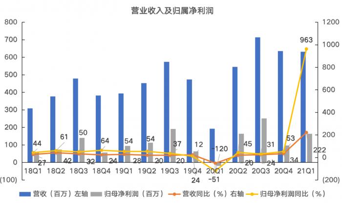 4月9日,通策医疗(600763.SH)发布2020年年报及2021年一季报。年报显示,通策医疗实现营业收入为20.88亿元,同比增长8.12%,归属净利润为4.93亿元,同比增长5.69%。2021年一季度,通策医疗实现收入6.31亿元,同比增长221.59%,归属净利润为1.64亿元,同比增长962.95%,对标2020年一季度受疫情冲击的业绩,2021年业绩大增。