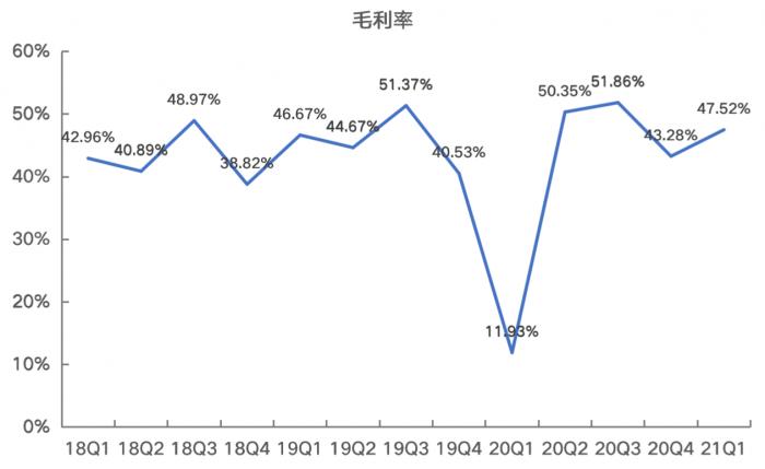 看完收入,再来看通策医疗整体的毛利率情况。上图可得,2020年四个季度,除一季度受疫情影响外,其余三个季度通策医疗的毛利率水平均高于2019年。到了2020年一季度,毛利率维持较高水平,说明公司收入恢复增长背后,毛利率稳中有升。