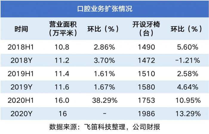 2020年,公司的扩张情况如何?上图可知,2020年以来,通策医疗扩张步伐加快,营业面积在上半年出现大幅增长,下半年公司给出的数值是超过16万平米,说明下半年新增营业面积不多;但从开设牙椅来看,2020年上半年、下半年环比继续提升。