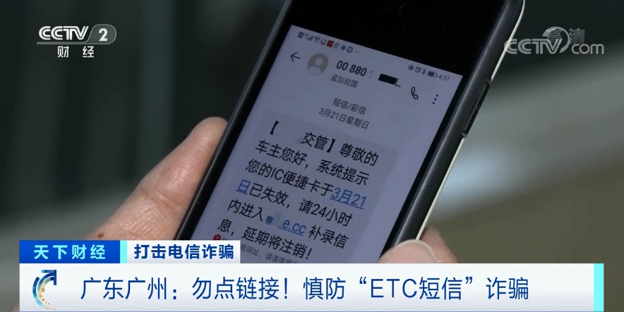 近日,广州市反诈中心陆续接到关于“ETC短信”诈骗的报案,有市民点击链接“办理ETC业务”后,银行卡里的钱就被转走了。到底是怎么回事呢?