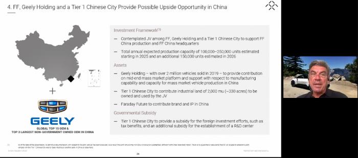 今年1月底的投资人说明会上,FF官方就曾透露:正在探索通过合资企业在中国增加量产能力的可能性。那么,目前有何新进展?