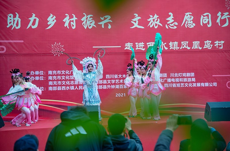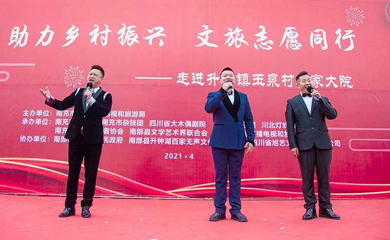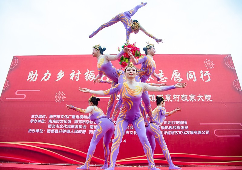 4月9日,由四川省市文化广播电视和旅游局主办,市文化馆、市杂技团、省大木偶剧院、市川剧团、川北灯戏剧团、市文化志愿者协会、南部县文联、南部县文广旅局承办的“助力乡村振兴 文旅志愿同行”文艺进基层慰问演出公益活动分别走进南部县升钟镇玉泉村敬家大院和该县西水镇凤凰岛村,吸引了当地众多村民前来观看,为老百姓们送上一场丰盛的文艺“大餐”。