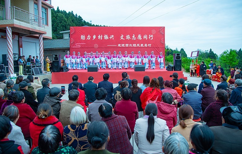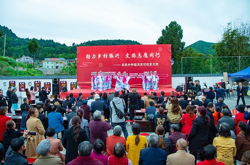 在美丽的升钟湖畔,当天上午,听说在家门口有演出,附近的老百姓早早地来到云泉村敬家大院。随着民俗表演《中国龙》《狮舞》高跷会的精彩演出,现场的气氛迅速热烈起来,演出过程精彩纷呈,赢得现场观众的阵阵掌声。杂技、大木偶书法、川剧等节目被现场观众的叫好声推向一波又一波的高潮,《幸福中国一起走》《等待》等歌曲深受百姓喜爱。当天下午,演职人员们驱车来到位于升钟湖的西水镇凤凰岛村,为这里的群众也带来了一场丰盛的文艺“大餐”。