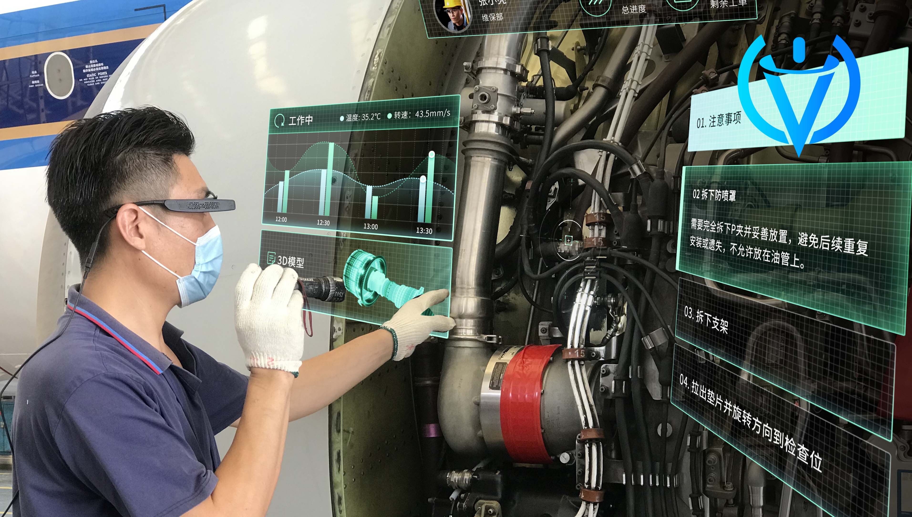 “和南航第一期我们先合作的是远程技术指导,做技术标准化,就是把过去的航空检修标准工作数字化、AR化。这时候我们发现如果做远程画面共享的话,时间久了画面会太晃,那我们就需要做防抖,也要做很多新的算法;在有些关键节点负责安全的专家需要确定前方人员是否真的完成某个动作,这件事我们就用AI来验收,这里也需要专门的人员和预算来投入进去。”