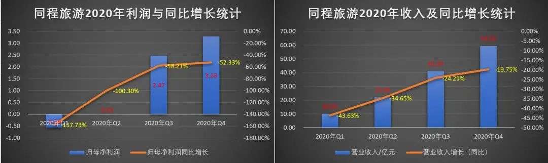 通过同程旅游财报可得知,2020年同程旅行各季度利润相较于2019年均下降超过50%,2020年Q1和Q2更是因为疫情打击而亏损。此外,各季度收入相较于2019年也有所下降。