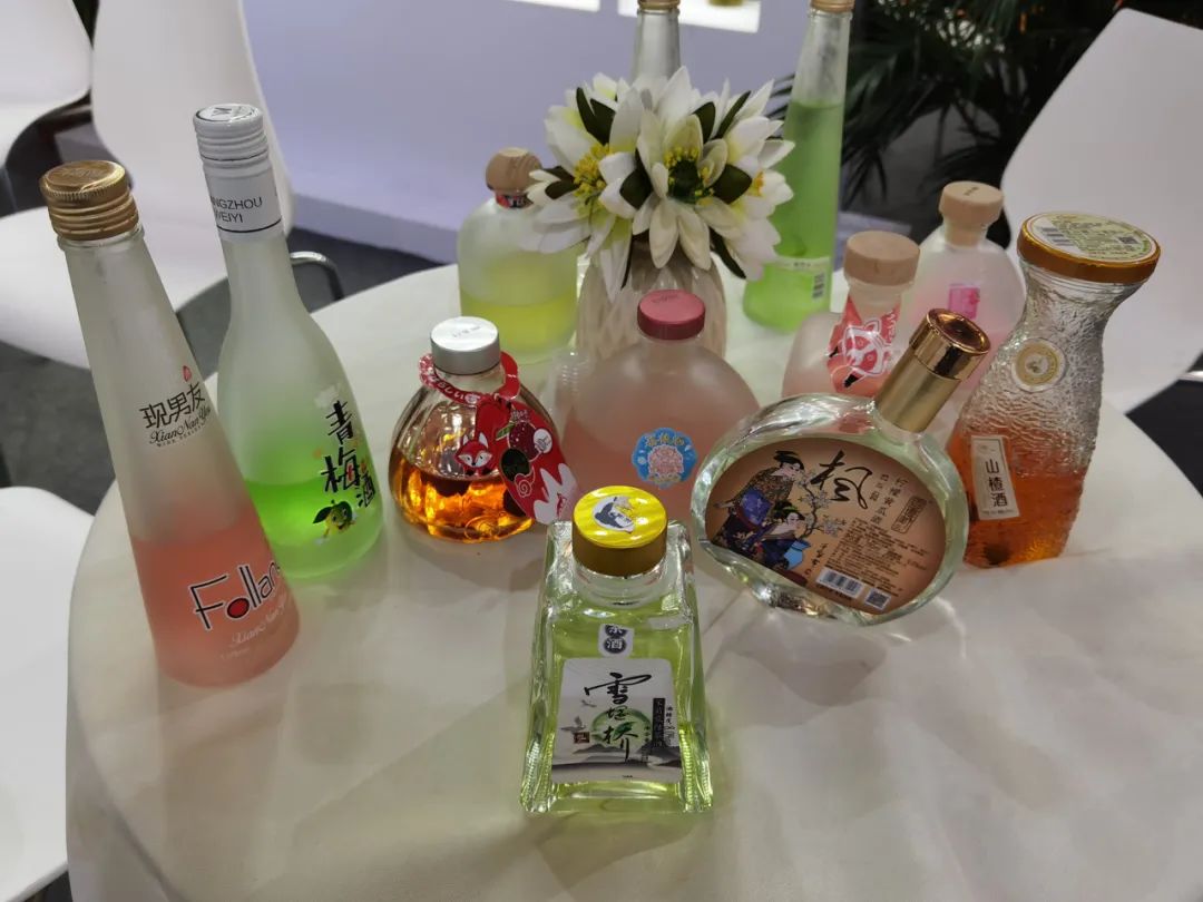 以瓶身设计为卖点的不止灯泡酒。江苏唯一果酒厂的展位摆满了各种各样的瓶子,“我们家的瓶身设计都是有专利的。”