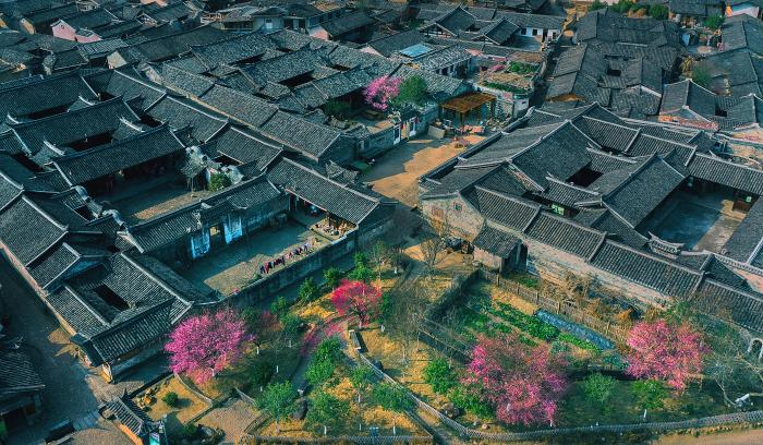 龙岩市连城县培田村,红梅点缀古村落。图源:《闽西日报》记者 傅长盛 摄