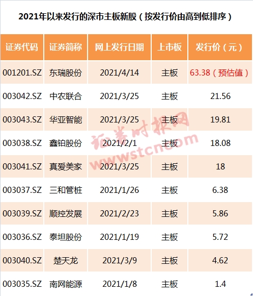 根据估算,东瑞股份预估发行价为63.38元(预估发行价仅供参考,以公司公告最终披露的发行价为准),如果最终敲定的发行价为上述值,此价格将创下年内深市主板新股发行价最高。