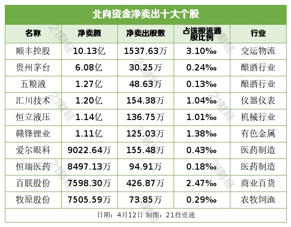 北向资金净卖出顺丰控股(002352.SZ)、贵州茅台(600519.SH)、五粮液(000858.SZ)、汇川技术(300124.SZ)、恒立液压(601100.SH)居前。