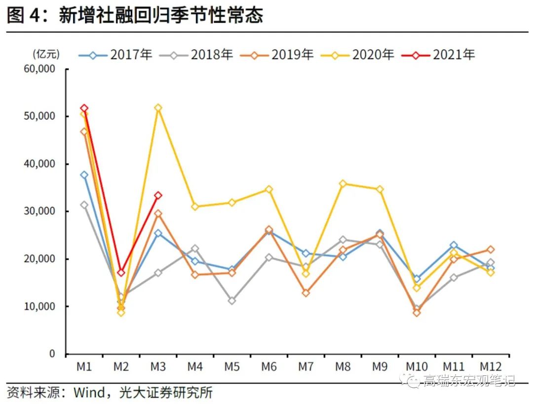 核心观点:虽然3月社融数据相较去年同期有所回落,但就16-19等正常年份的季节性规律而言,表现仍然非常强劲。尤其是反映实体融资需求的人民币贷款持续超出季节性。在监管控制信贷规模的政策基调下,企业融资需求旺盛仍带动新增信贷明显超出市场预期,从侧面体现监管压降信贷规模存在一定弹性空间,总量调控的同时亦强调结构优化,制造业贷款仍是政策导向。