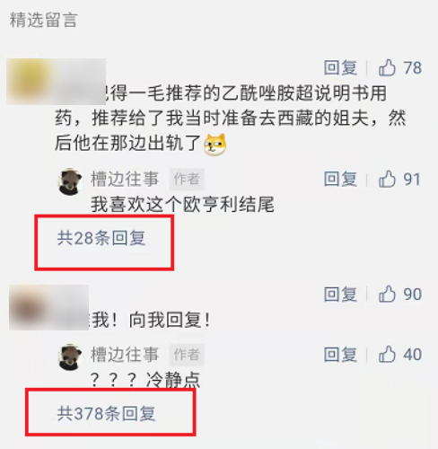 在那些被内测到了此功能的公众号留言区,很多精选留言下有几十甚至上百条回复。