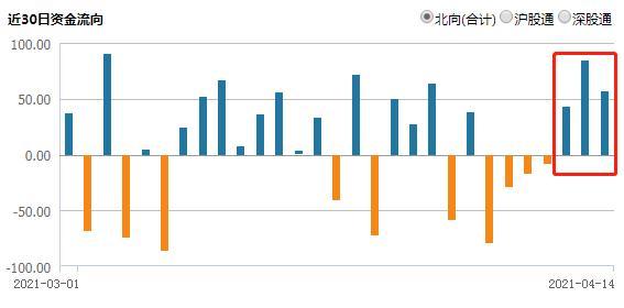 据21投资通(微信号ID:touzit21)智能监测,4月14日,北向资金净买入57.31亿元,其中沪股通净买入15.41亿元,深股通净买入41.90亿元。北向资金已经连续3日大举吸筹,累计流入净额185.06亿元。