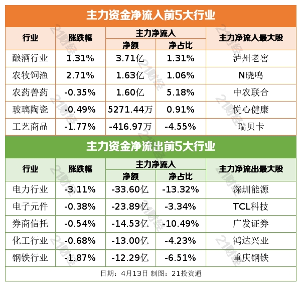 据21投资通(微信号ID:touzit21)智能监测,4月13日,北向资金净买入84.71亿元,其中沪股通净买入26.06亿元,深股通净买入58.65亿元。增持电子元件,减持交运物流。