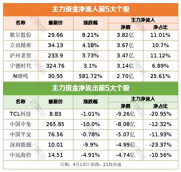 4月13日,大小指数全天分化明显,沪指早盘震荡,午后跳水失守3400点,创业板涨幅收窄,最终收涨0.84%。行业板块多数收跌,碳中和概念股全线退潮;个股呈现普跌态势,两市下跌个股近3000只,逾30只个股跌停。中国中免、宋城演艺等多只机构票出现大跌。