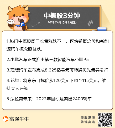 热门中概股周三收盘涨跌不一,区块链概念股和新能源汽车概念股普跌;消息称阿里巴巴寻求以更低价格延长51.5亿美元循环信贷;花旗:将京东目标价从120美元下调至115美元,维持买入评级。