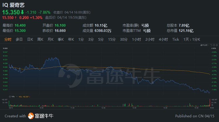 Archegos爆仓受害股爱奇艺,六个交易日已累跌近20%。