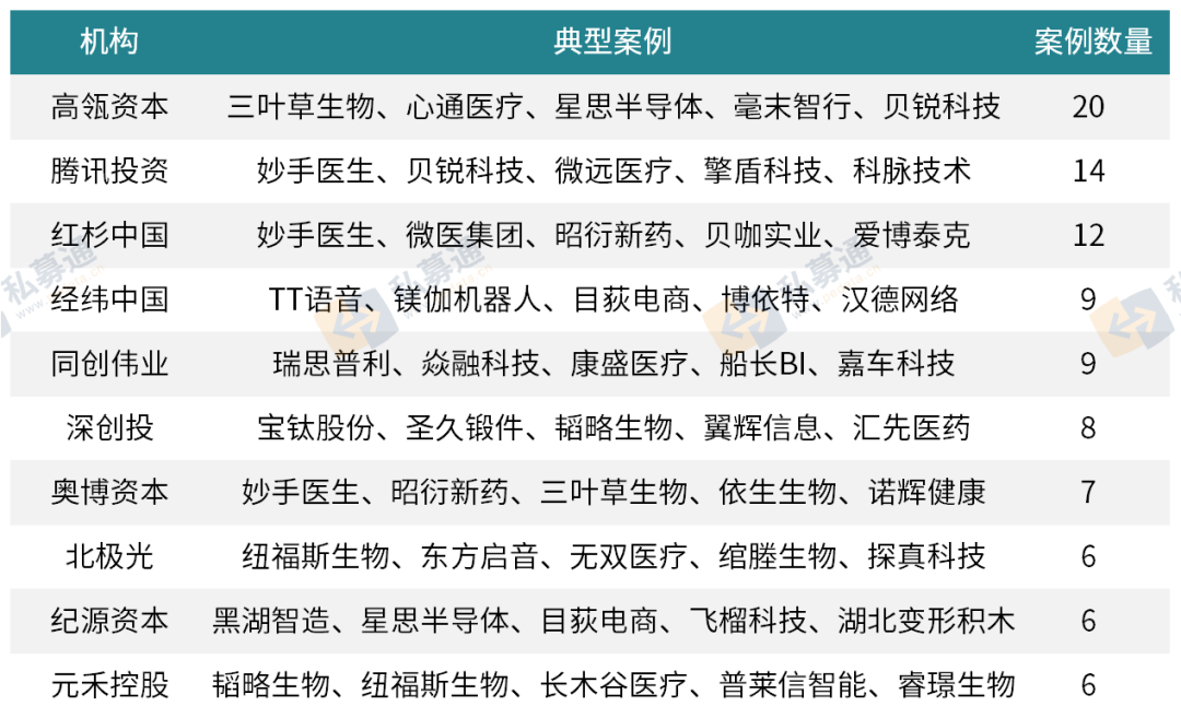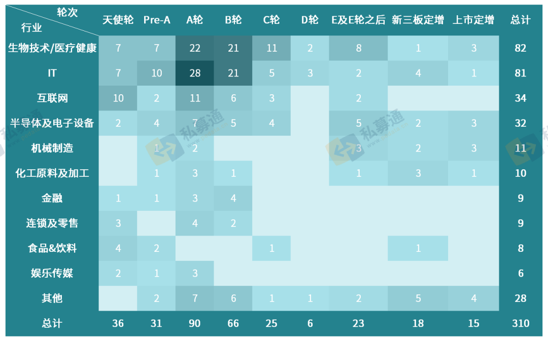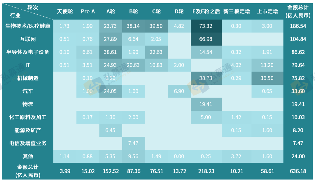 生物技术/医疗健康行业案例数与投资金额均列榜首