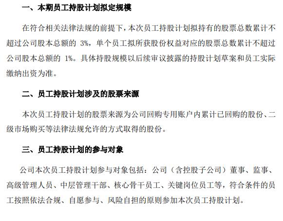 格力电器公告,拟筹划员工持股计划。本次员工持股计划拟持有的股票总数累计不超过公司股本总额的3%,单个员工拟所获股份权益对应的股票总数累计不超过公司股本总额的1%。具体持股规模以后续审议披露的持股计划草案和员工实际缴纳出资为准。