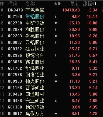 隔夜外围大宗商品期货普遍上涨,而有色金属期货也表现较为突出。盘中以沪铝主力为代表的期货,更是创下了几年来的新高,叠加行业龙头比如云铝股份、赣锋锂业、天齐锂业等近期公布的业绩或大幅减亏,或同比大幅增长,也对板块个股走势带来了刺激。