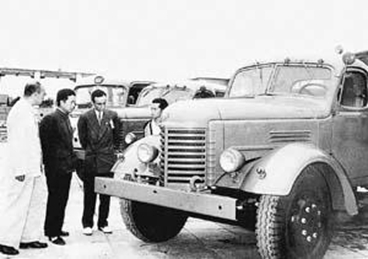 1957年秋,客商在第二届广交会上洽谈解放牌汽车项目