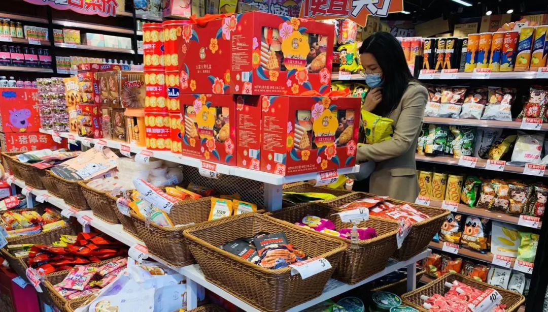 旁边一对年轻情侣在挑选商品,男生对女生说,“想吃什么随便拿。”语气比「承包整个鱼塘」还要豪爽,最后拎了三大包出门。