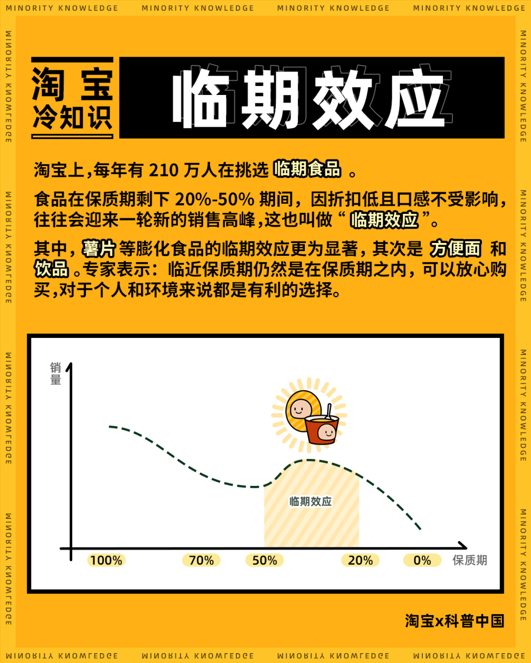 食品在保质期剩余20%-50%期间,因折扣低且口感不受影响,往往会迎来一轮新的销售高峰,这也叫做“临期效应”。
