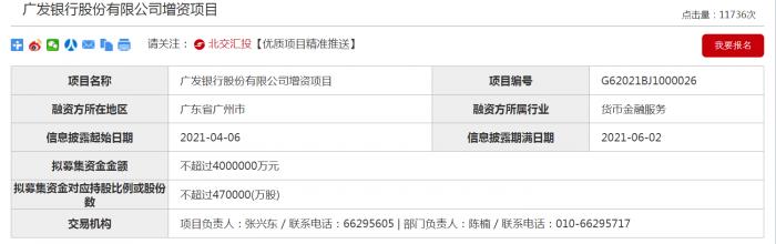 400亿!广发银行启动增资,价格不低于8.8元/股