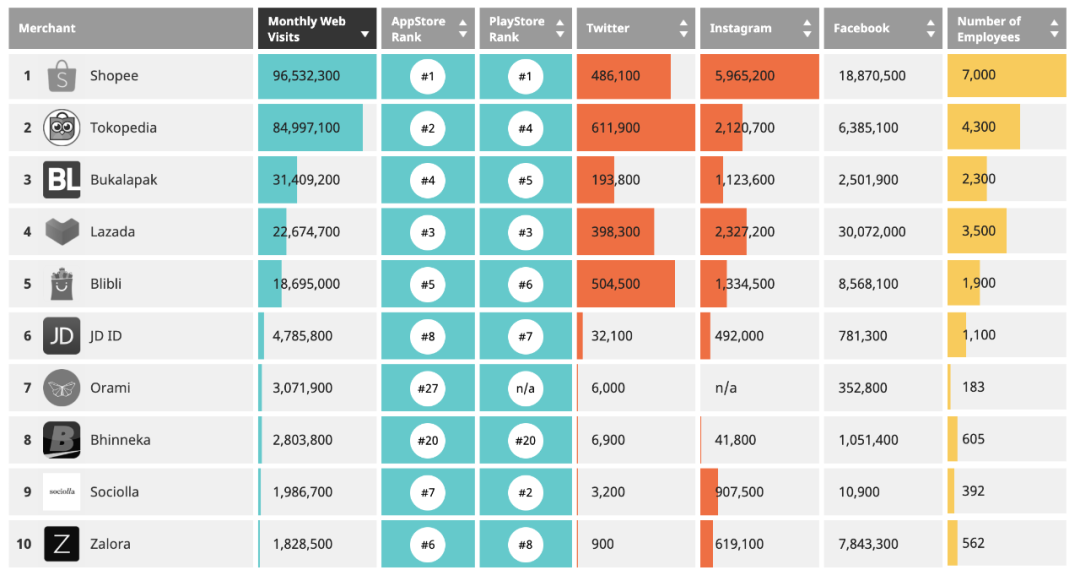 到了2017年时,拥有先发优势的Tokopedia已经成为了印尼当地最大的电商平台。当时,根据电商聚合平台iPrice报告显示,Tokopedia是印尼访问量最大的电商网站,排在它身后的是印尼另一家C2C电商平台Bukalapak,以及2012年成立于新加坡的Lazada。