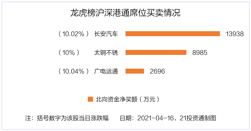 4月16日,北向资金参与龙虎榜中的个股共有3只,均为深股通个股,合计净买入2.56亿元。