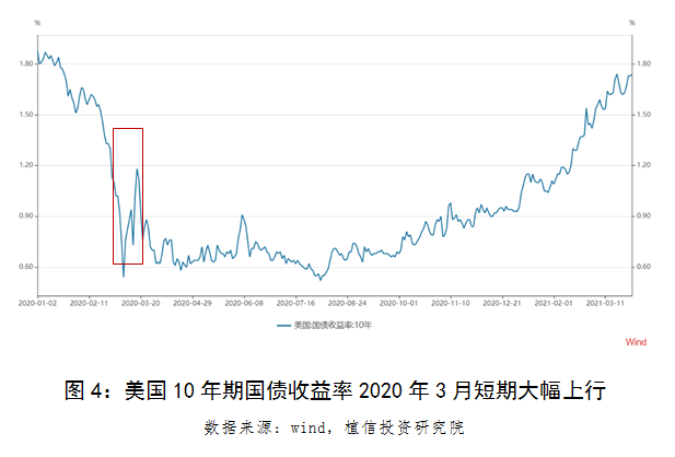 维持国债市场稳定是SLR豁免政策退出的另一重要原因。2020年3月美国新冠疫情爆发,海外投资者对美国国债的信心也有所动摇,2020年3月外国投资者持有美国国债规模快速下滑4%,约减持2800亿美元。10年期国债收益率随即出现短期跳升(如图4),短期升至1.18%的阶段性高位。为稳定国债市场,配合量化宽松政策的顺利实施,美联储在当时需要鼓励商业银行购买并大量持有国债。