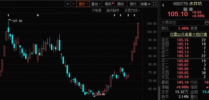 具体来看,白酒板块的走强主要是因为个股表现突出带动。其中之一是公布了业绩高速增长的水井坊,近几个交易日股价持续大涨接近了历史高位;另外一方面,有望“摘帽”的ST舍得,成为了A股历史上首支股价突破100元的 ST个股。从20元的低点涨到100元,ST舍得仅仅用了1年的时间。