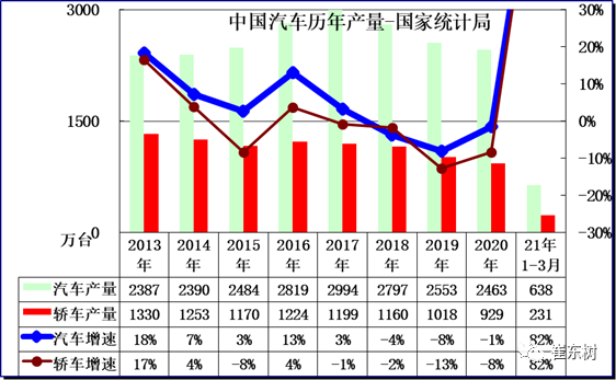 2. 2021年1-3月汽车产量回稳