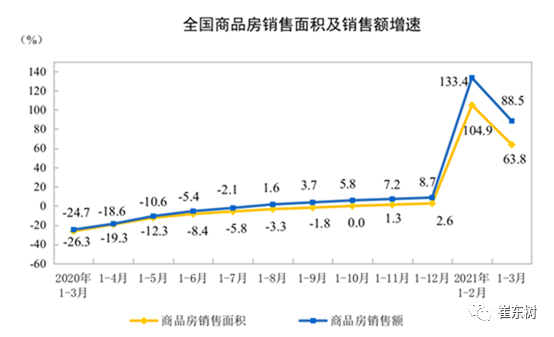 16-19年楼市火爆影响很大,后期逐步降温对车市的促进较好。。 2020年,商品房销售面积17.6亿平方米,比上年增长2.6%,上年为下降0.1%。2021年1—3月份,商品房销售面积17363万平方米,同比增长1.05倍;比2019年1—3月份增长23.1%,两年平均增长11.0%。