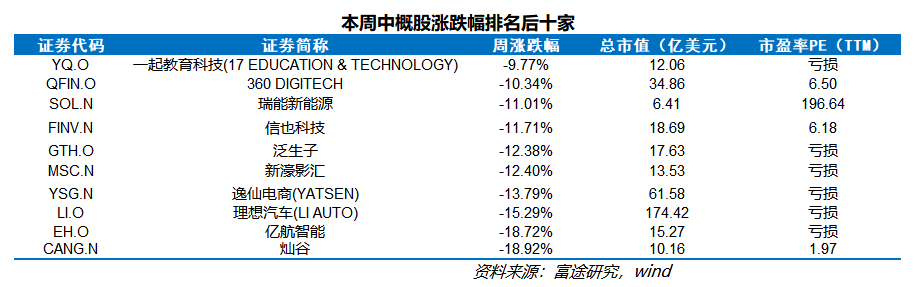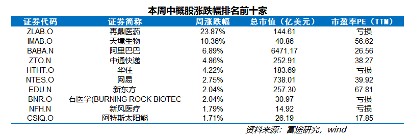 一、一周中概股市场表现回顾