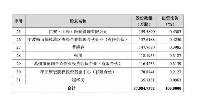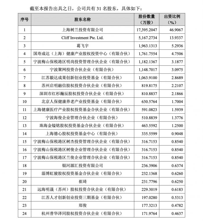 截至辅导备案报告出具日,树兰医疗共有31位股东。