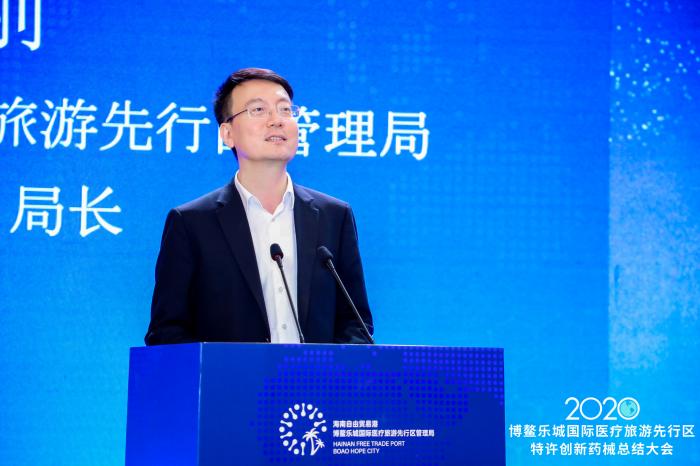 图片说明:顾刚在2020博鳌乐城国际医疗旅游先行区特许创新药械总结大会上发言 乐城管理局供图