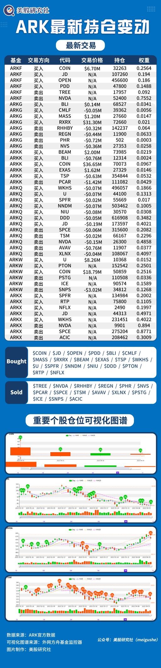 由于ARK基金管理的ETF的业绩非常出色,ARK会公布每日持仓动作。4月20日,美股研究社整理该基金持仓动作如下: