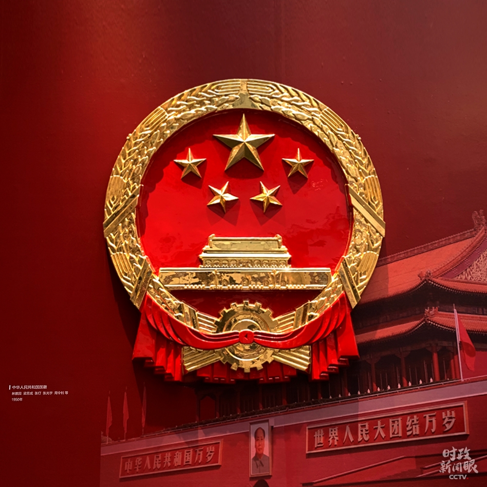 △在国徽的颜色选择上,林徽因、梁思成主张庄严富丽,仅以金、红二色表现。(总台央视记者石丞拍摄)