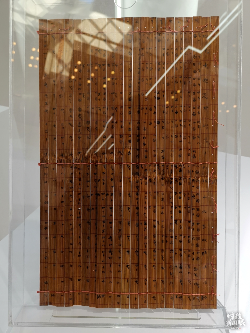 △清华大学藏战国竹简《算表》,在2017年经吉尼斯世界纪录独立核实认证,是目前发现的人类最早的十进制计算工具。(总台央视记者魏建拍摄)