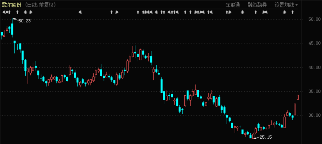 2020年11月6日-2021年3月24日,歌尔股份股价大跌47.48%;