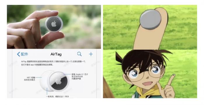 此外,还有网友表示,可以把AirTag放在车上方便车库找车,甚至定位宠物、耳机、眼镜、U盘、手机、纸、笔等等。也有网友疑惑,“我最容易丢的就是手机,怎么办”“以后丢东西的损失还要增加229”。眼尖的网友发现,AirTag与柯南动画片里的追踪器高度相似。
