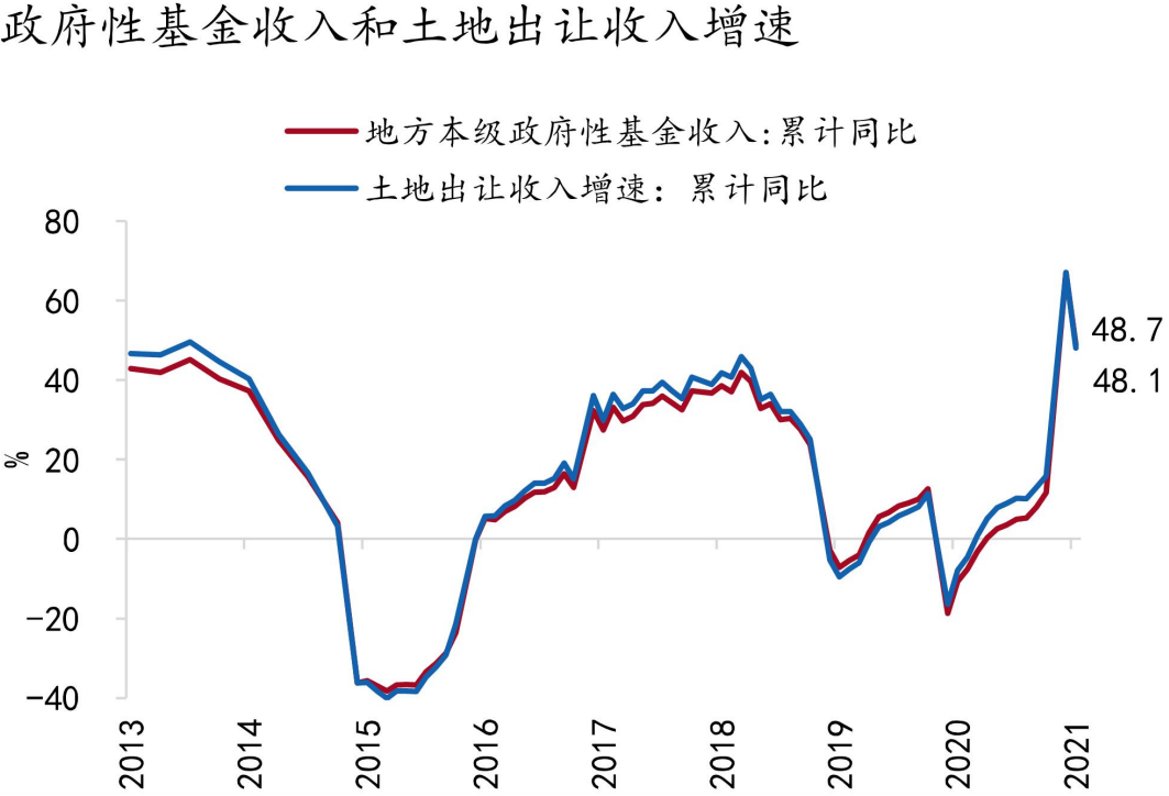 1-3月,国有土地出让收入增速大幅上升48.1%,两年年均复合增长率为16.8%,环比下降1.4pct,为历史同期中等水平。在“房住不炒”的政策基调下,土地出让收入增长边际放缓。前瞻地看,由于公共财政收支压力加大,预计地方政府对土地出让收入的依赖程度仍然较高,后续土地收入有望以稳为主。