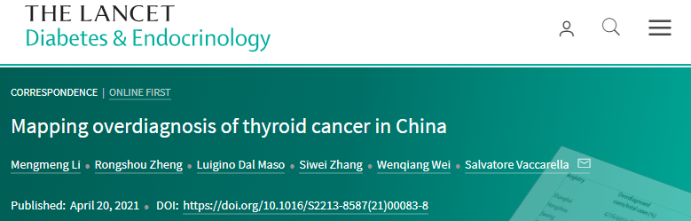[1] Mengmeng Li, et al., (2021). Mapping overdiagnosis of thyroid cancer in China. The Lancet Diabetes & Endocrinology, DOI: https://doi.org/10.1016/S2213-8587(21)00083-8