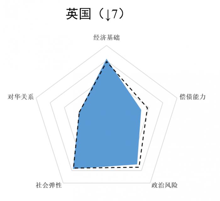 报告显示,2021年英国的排名也下降了7位,主要原因是英国的偿债能力和政治风险指标下降明显。