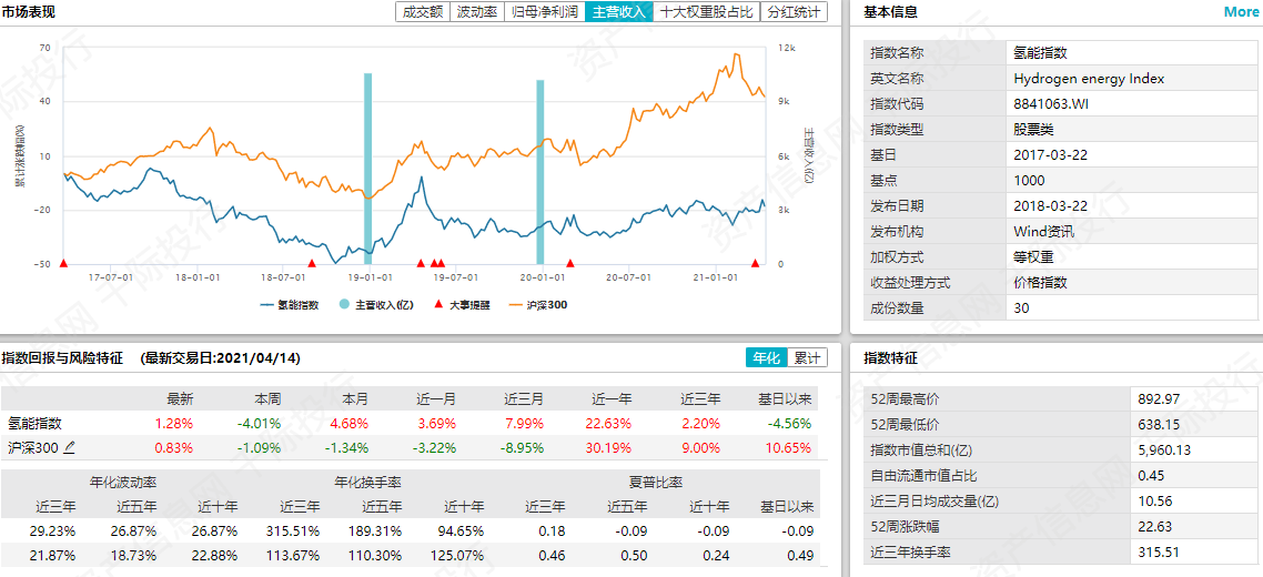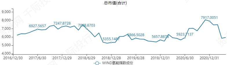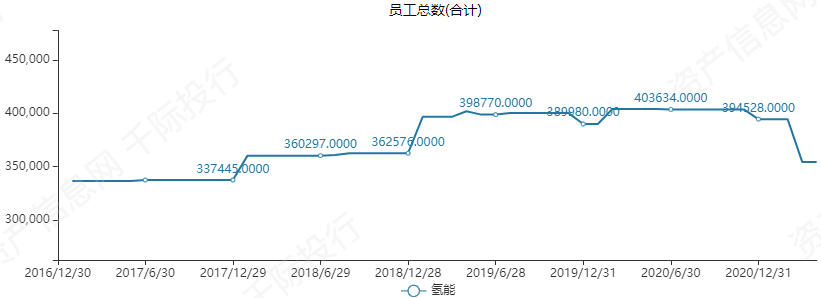 截止2021年4月15日,氢能板块沪深成分股个数为30,在近几年中呈上升趋势。企业总市值在近几年较为平稳,截止2021年4月15日,企业总市值为5960.1301亿元,企业员工总数达354382人。