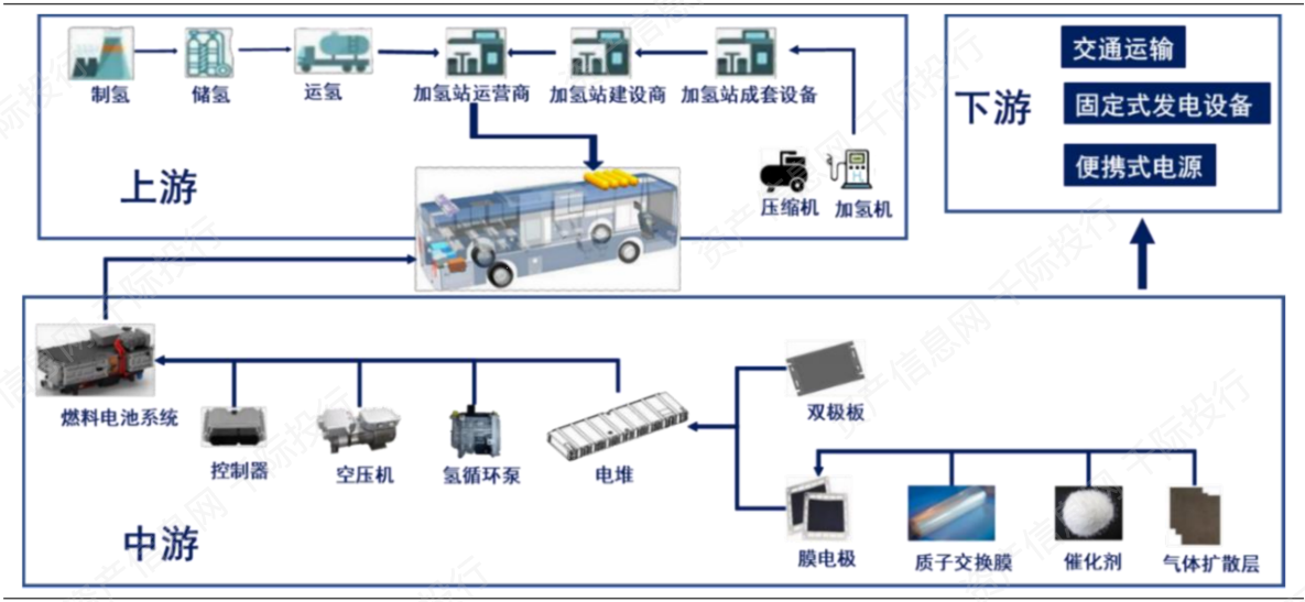 下游燃料电池应用包括便携式应用、固定式应用、交通运输应用。